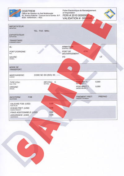 Please be informed, that considerable penalties will occur at POD in case any cargo with final destination DRC is not accompanied by a F.E.R.I.